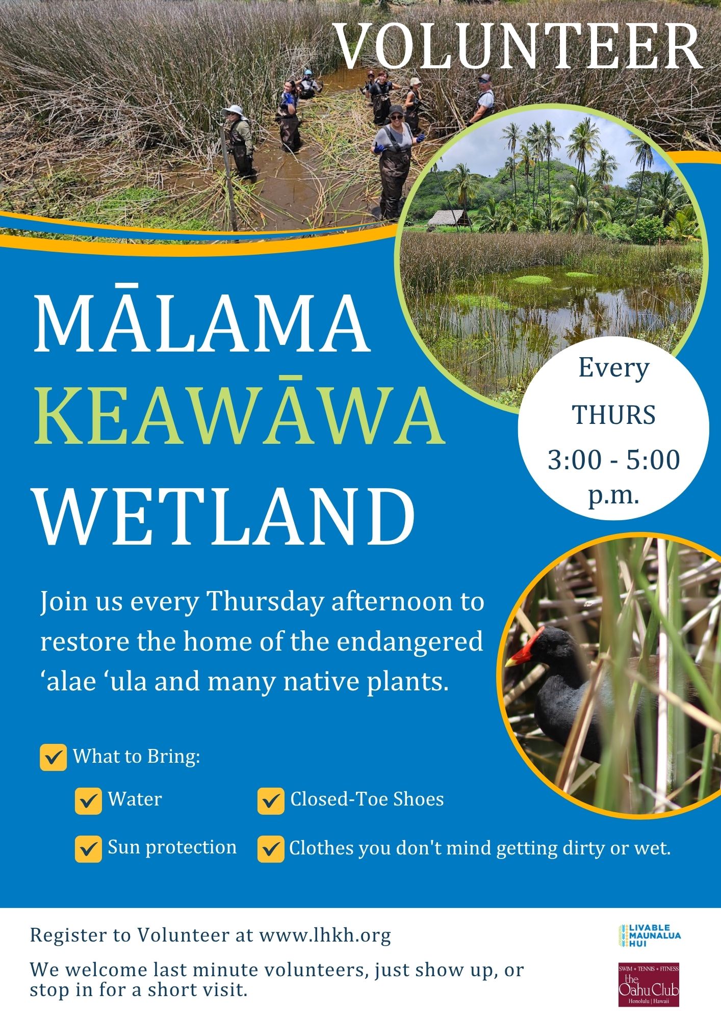 Weekly volunteer opportunities at Keawāwa Wetland! Join us from 3 to 5 p.m. every Thursday! Sign-up form below. Flyer here: